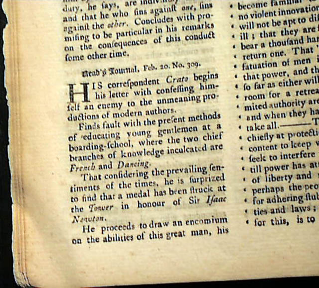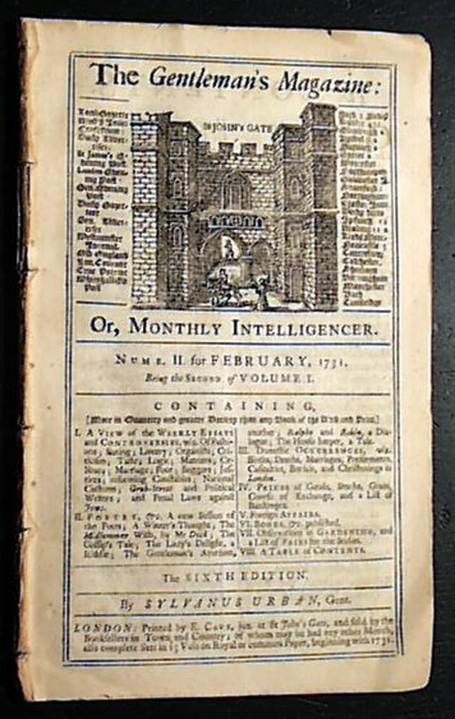 This was the very first periodical to use the word "magazine" in its title, and also the very first general interest magazine in the world--and this is just the second issue published from the very first year of its existence. This title began in 1731 and ran through 1907.