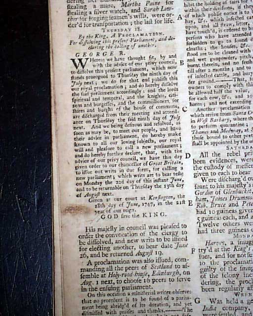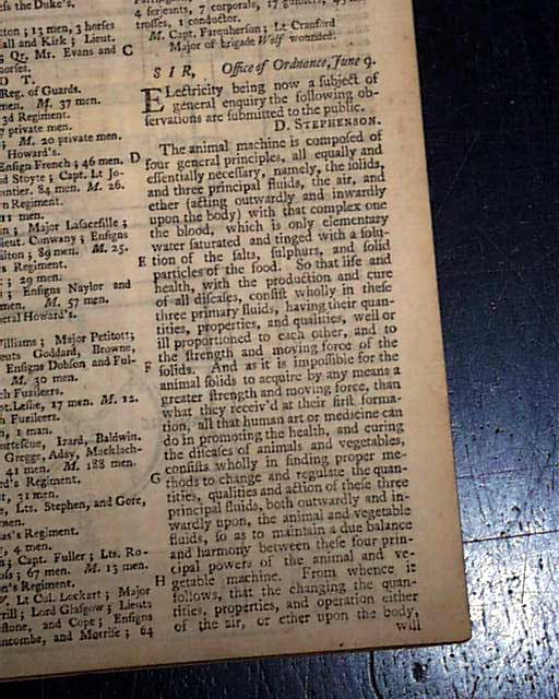 Among other articles: "Regulation of the Window Tax" "Account of the Battle of Kesselt" "Reasons for Dissolving the Parliament" "Transactions at Genoa" "Observations on St. Paul's Conversion" "Construction and Use of a new Hygroscope" and much more.