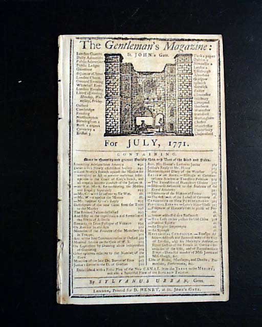 A very nice and extremely popular magazine from the "mother country" not long before the outbreak of the Revolutionary War. This was the first periodical to use the word "magazine" in its title, having begun in 1731 and lasting until 1907.