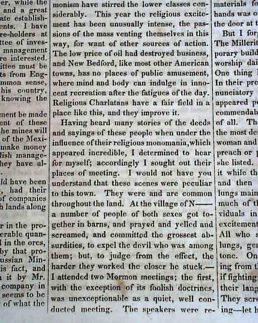 This is issue #16 under the "new series". The front age has a lengthy article which is descriptive pf the town of New Bedford, Mass., noting at the beginning: "This is a beautiful town; affluence & general wealth seem to have centered here...in no other town have I seen such an air of general prosperity...it has all been fished from the ocean by the hardy whalers..." and much more.