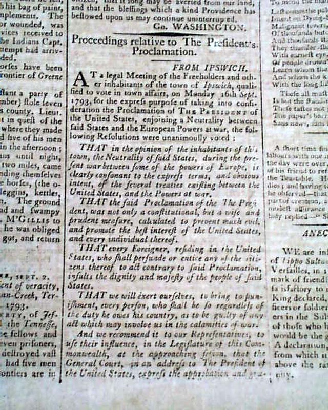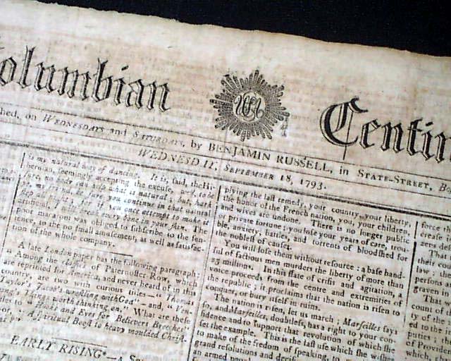 COLUMBIAN CENTINEL, Boston, Sept. 18, 1793