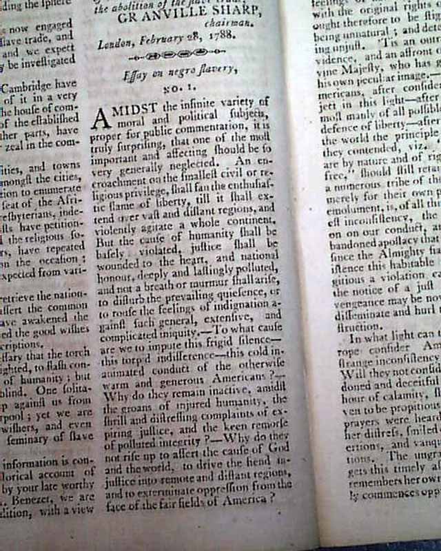 Also of significance is: "Essay On Negro Slavery, No. 1" which takes 3 pages and is signed: "Othello". As noted on the web it was determined that "Othello" was a Negro.