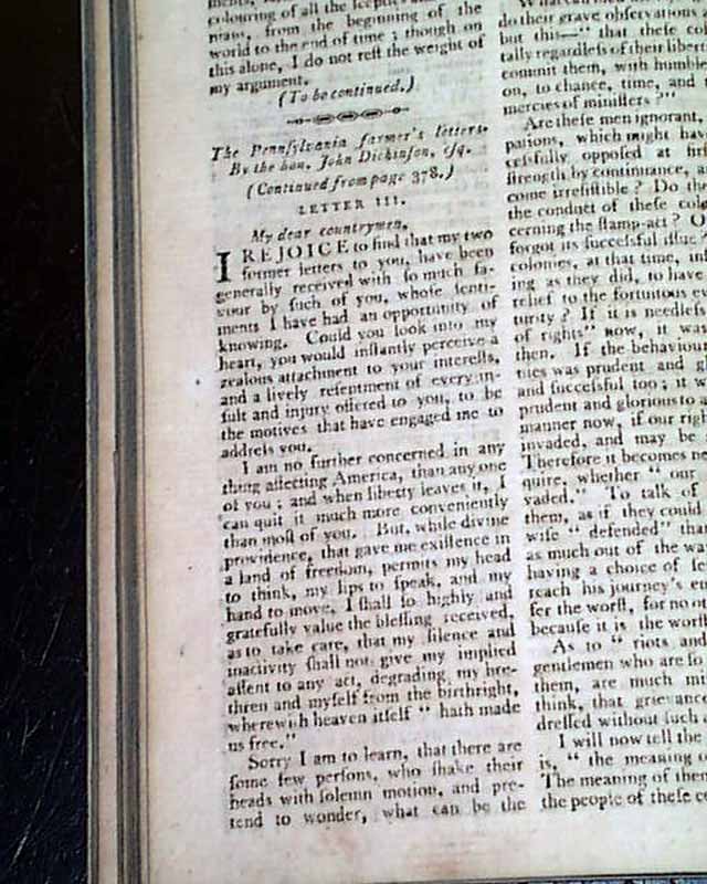 The historic 3rd, 4th, 5th, 6th & 7th letters of "The Pennsylvania Farmer's Letters by the Hon. John Dickinson" are also present, taking over 16 pages.