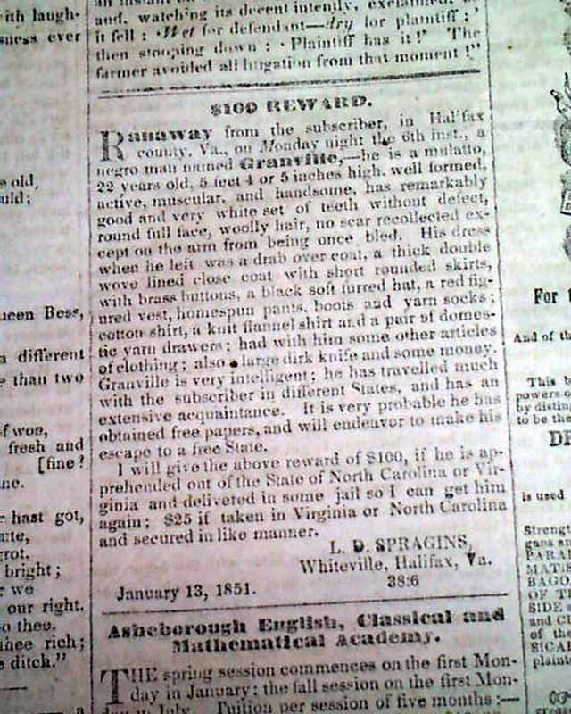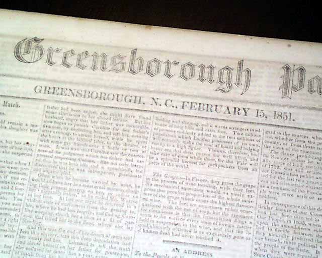 From 1851 Greensboro, ten years before the outbreak of the Civil War...