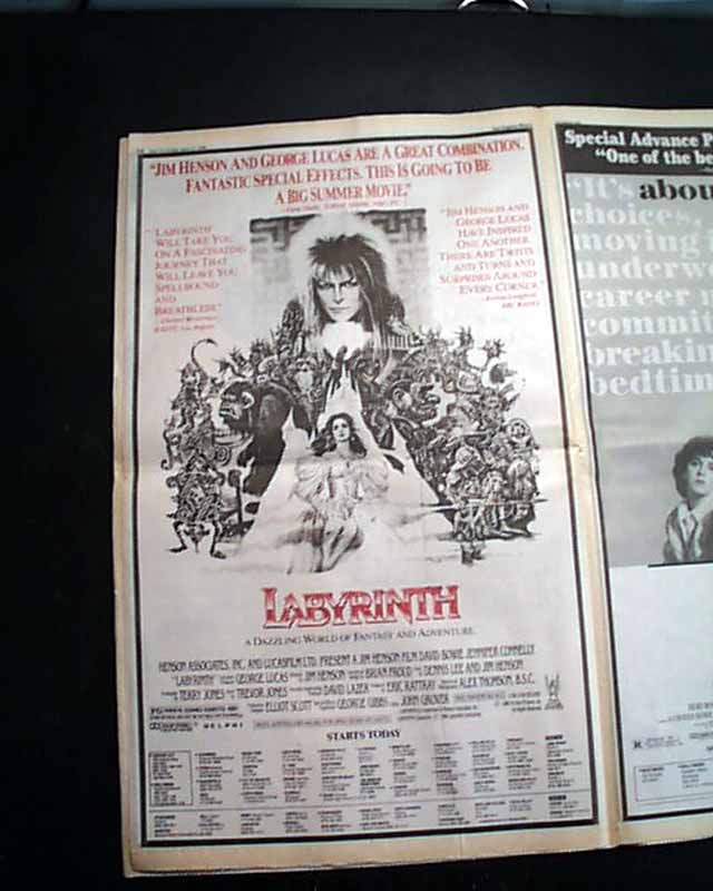 A terrific issue on the premiere of the motion picture cult classic hit "Labyrinth" and perhaps no better issue could be found than this, the leading newspaper from the home of the entertainment industry - the Hollywood area's prime publication.