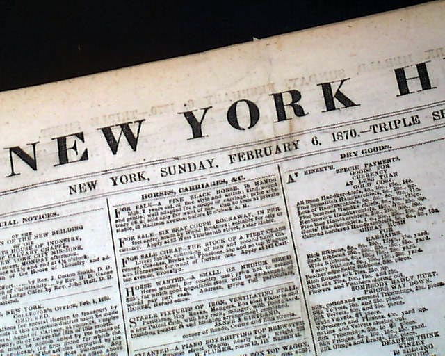NEW YORK HERALD, Feb. 6, 1870 Near the top of page 3 is an intriguing report of a very notable--yet widely unknown--Wall Street "first".