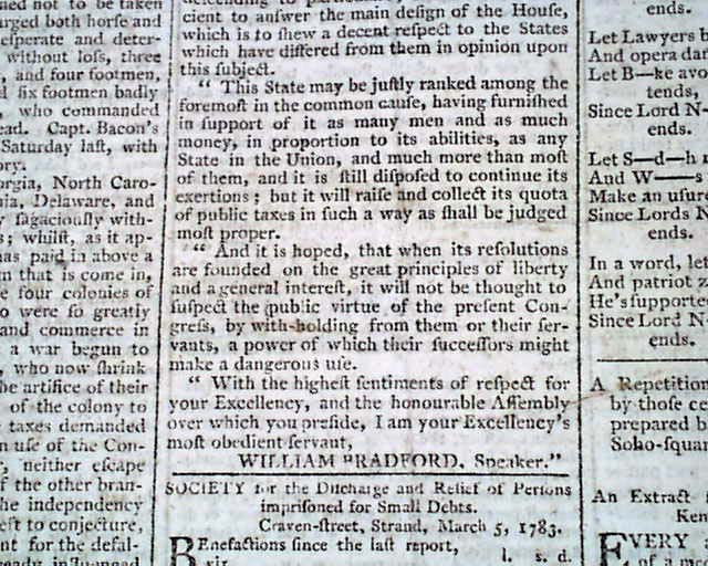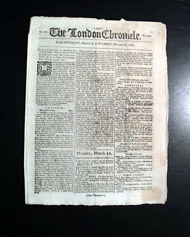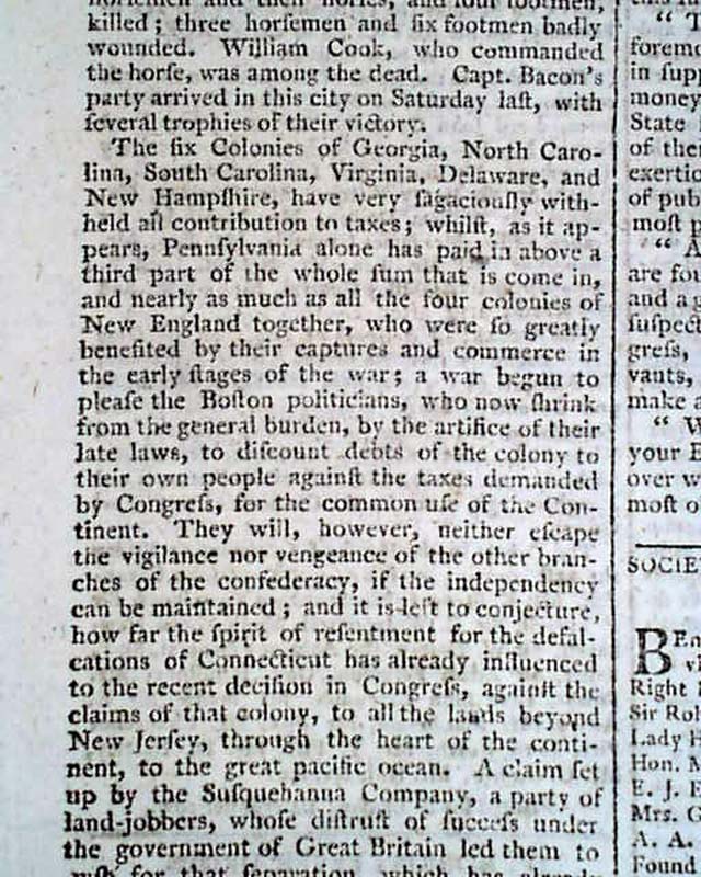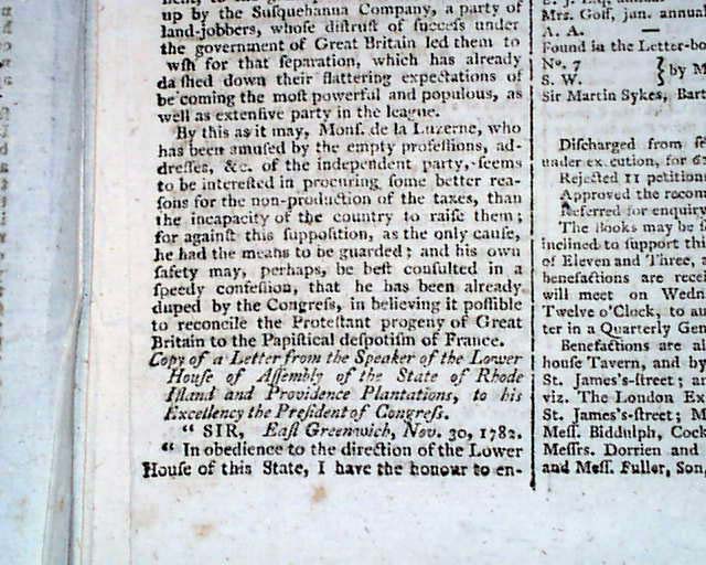 Over half of page 3 is taken up with: "American News" which mentions the capture of some ships, and how various colonies have not made their tax contribution as they should have. Also a lengthy letter from Rhode Island concerning taxes on imports.