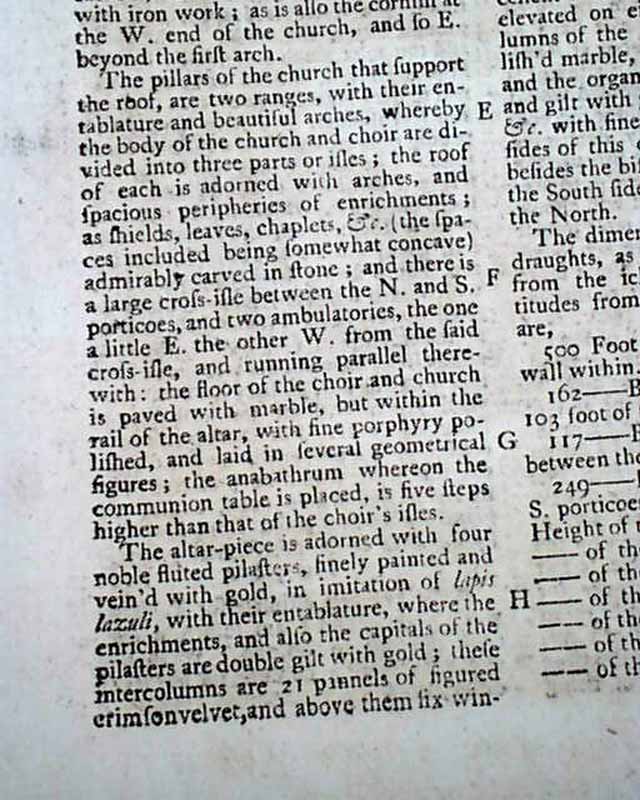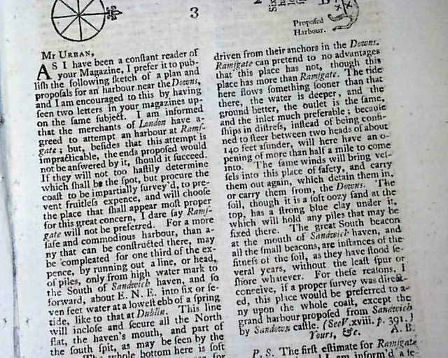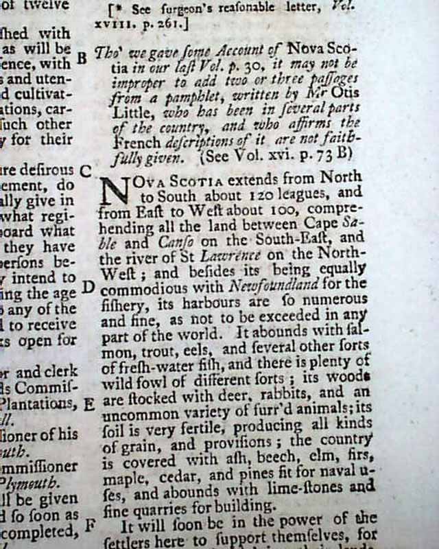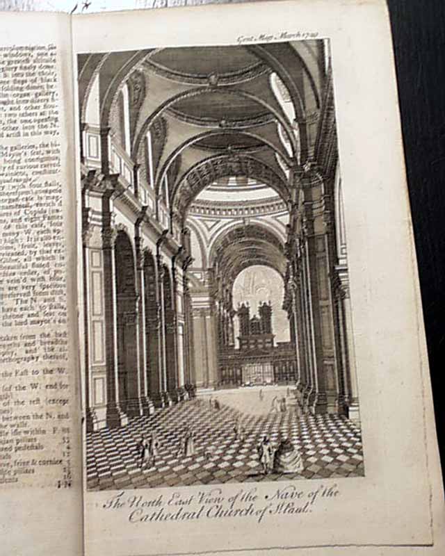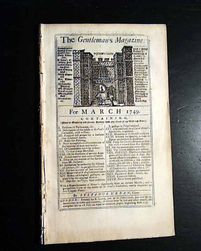 THE GENTLEMAN'S MAGAZINE, London, March, 1749 Among the interesting items in this issue are: "Plan of a Harbour to the Downs" which includes an illustration of it; "A Description of St. Paul's Cathedral" which is accompanied by a nice full page plate of the interior; "Antient Ships of an Enormous Size" "Account of Nova Scotia from Mr. Little" "Fundy Bay" "Sermon on Chastity, Before the King" "Proposal to Extend our Trade to Japan" and more.