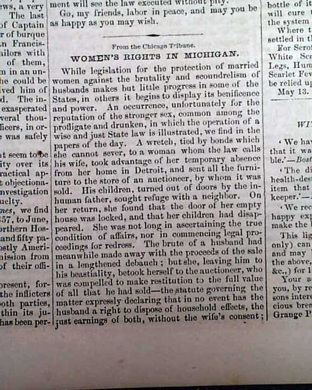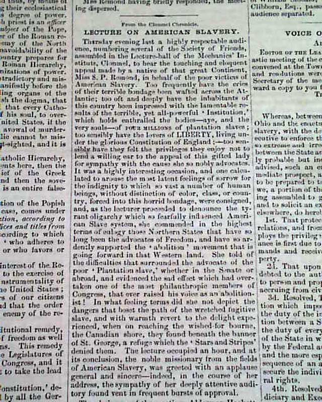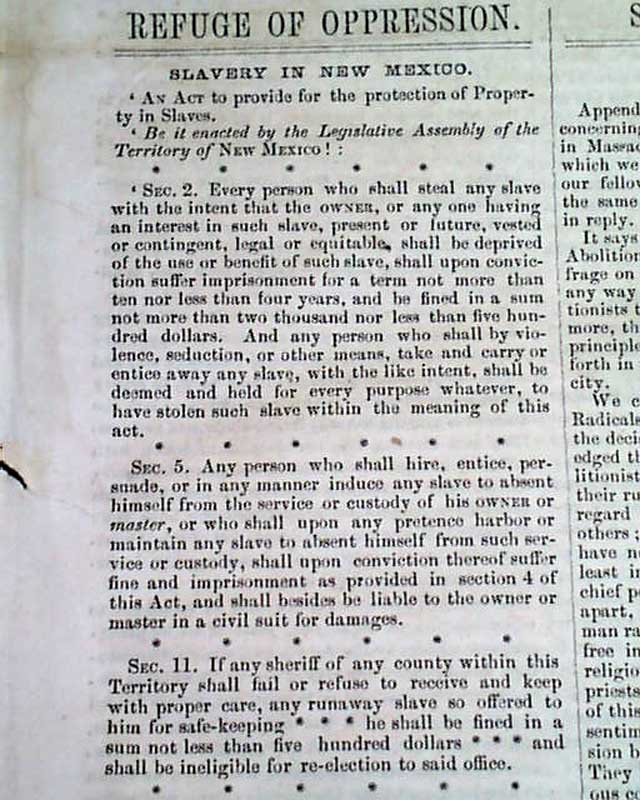 Articles include: "Lecture on American Slavery" "Slavery In New Mexico" "Slavery in the United States" "Women's Rights In Michigan" and more.