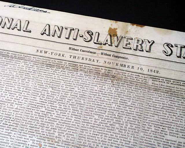 NATIONAL ANTI-SLAVERY STANDARD, New York, Nov. 10, 1842  As the title would suggest, an anti-slavery newspaper from 19 years before the Civil War.