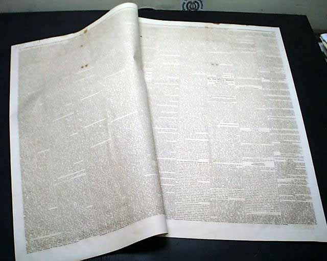 Four pages, small binding slits at the blank spine, small wear hole near the top of the front leaf does not affect mentioned reports. Folder size noted is for the issue folded in half.