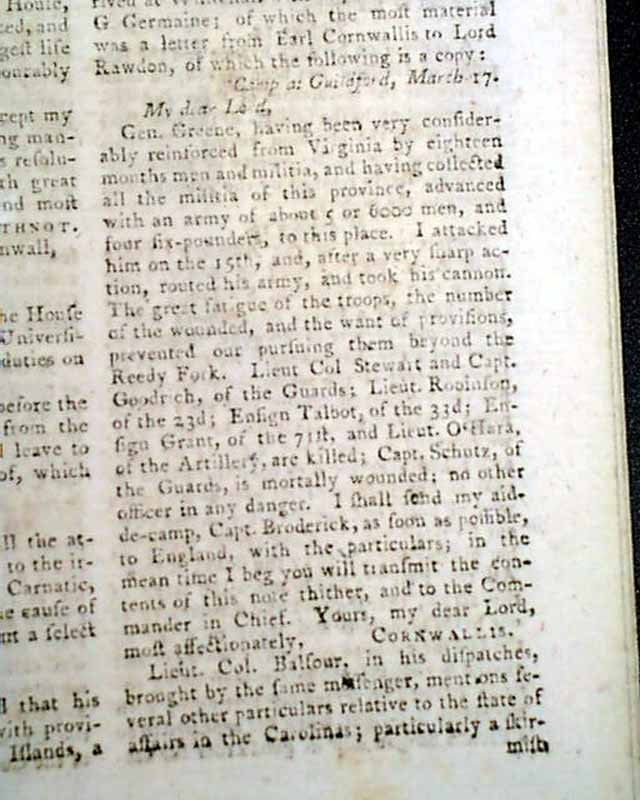 There is also a letter signed: H. Clinton, and yet another very nice letter on the battle of Guilford Court House in North Carolina signed: Cornwallis.