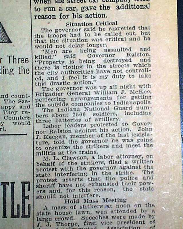 The front page has a nice banner headline: "INDIANA NATIONAL GUARD IS ORDERED TO INDIANAPOLIS" with subheads. (see) Surprisingly this issue is in good condition being from the "wood pulp" era. Very hard to find issues that are not totally fragile from this era in paper.