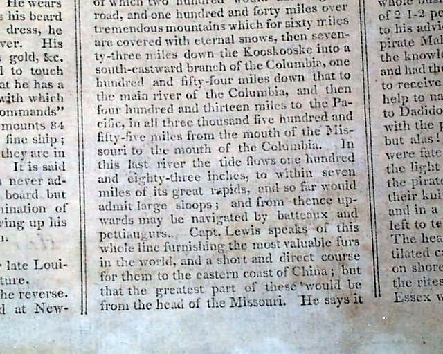 Page 7 has a nice report concerning the Lewis & Clark Expedition noting their safe return, with some accounting of their experiences.