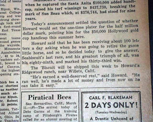 Page 15 has a two column heading: "Seabiscuit Retires From Competition" (see)