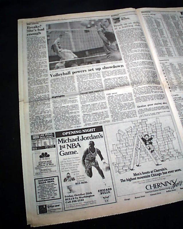 Michael Jordan's very 1st NBA game close in a Chicago newspaper...