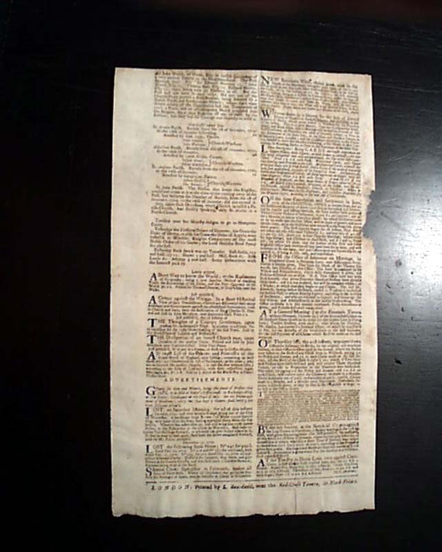A single sheet issue, 8 1/2 by 14 inches, two decorative engravings in the masthead, some loss at the spine margin not close to the mentioned report, otherwise good.