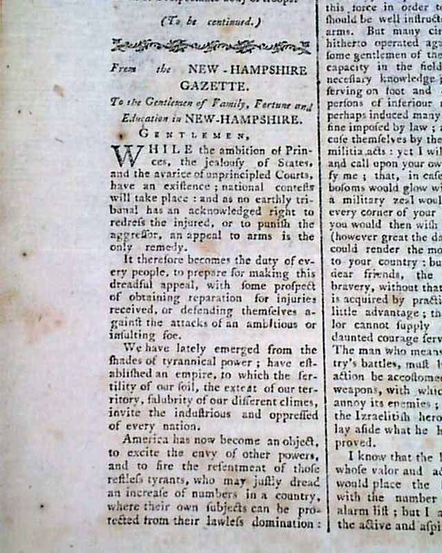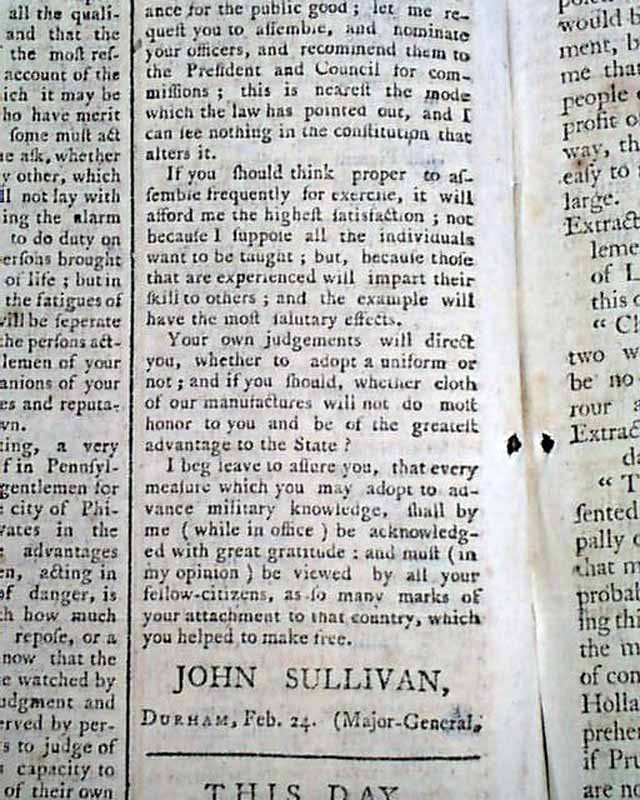 Most of page 2 is taken up with a lengthy address signed in type by the governor of New Hampshire: John Sullivan, mostly focused on the military & political situation of the country after the Revolutionary War.
