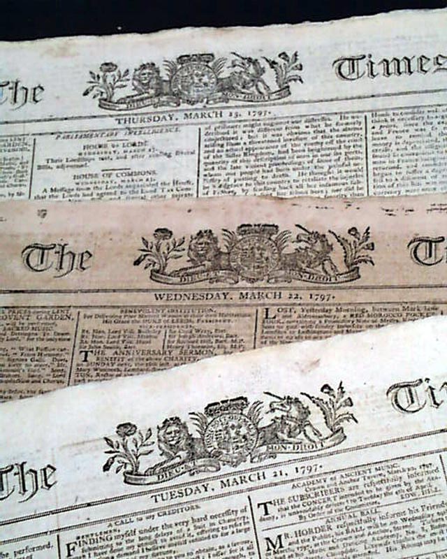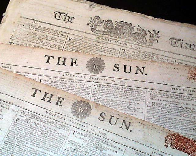 (10) THE SUN and THE TIMES were two of the more famous & successful of British newspapers in the late 18th century. The Times remains one of the iconic papers of the world, having begun in 1788 and is still printing today. It was the first newspaper to have "Times" in the title, since lending its name to innumerable newspapers on both sides of the Atlantic.