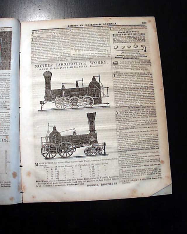 AMERICAN RAILROAD JOURNAL, New York, Dec. 18, 1845  An early issue of the very first American periodical on railroading. The best feature of this newspaper might be the engravings of a railroad engines and coaches as well as related railroad devices & inventions, as found on pages 1, 2 & 3.