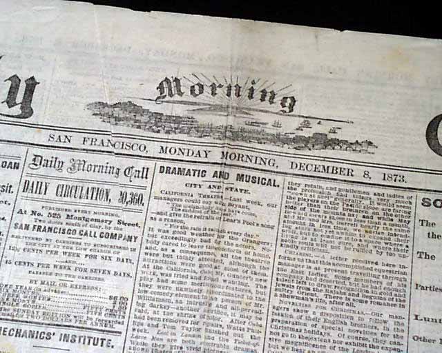 DAILY MORNING CALL, San Francisco, California, Dec. 8, 1873 A bottom corner of the front page has an article; "UTAH - Railroad Rout - Disgusted Mormon Converts Returning to Europe". It notes in part: "Several parties of Mormon converts who emigrated from the old country last Summer have within the past two weeks returned disappointed & disgusted...".