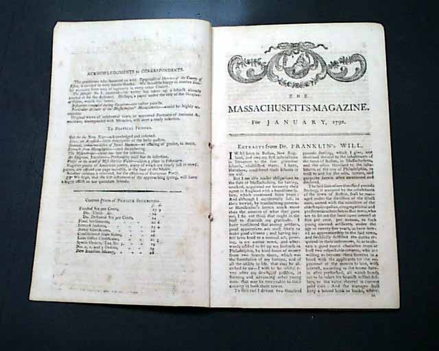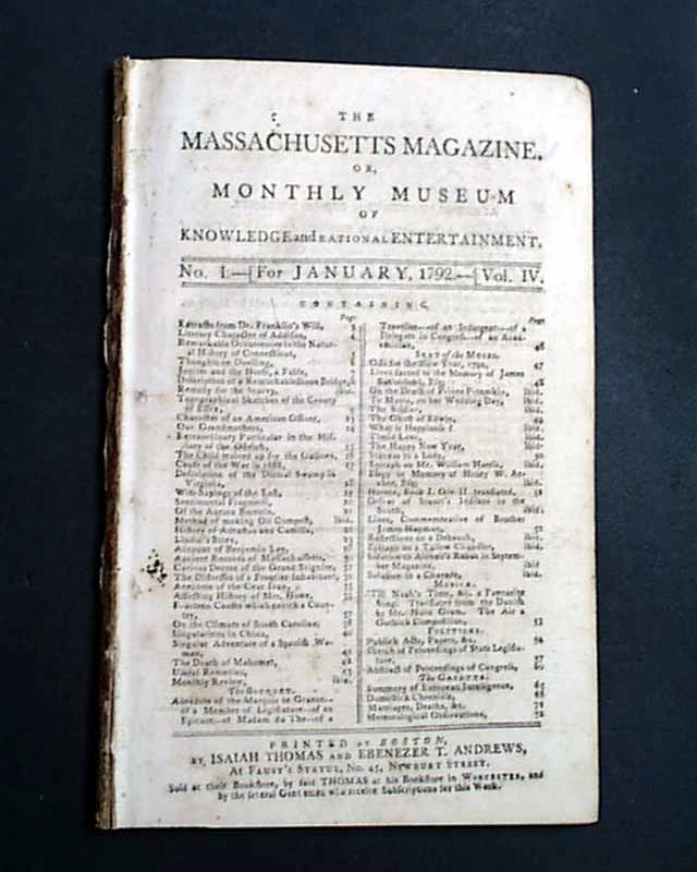 Item # 685663 THE MASSACHUSETTS MAGAZINE, Boston, January, 1792 The bulk of the issue is taken up with a wide range of eclectic articles as noted on the full title/contents page.