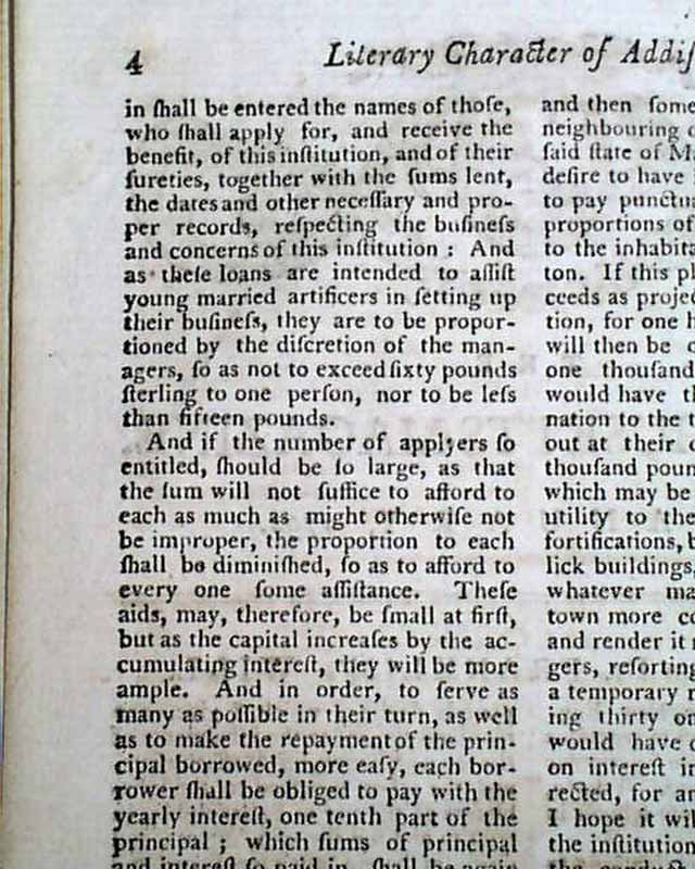 Eighteenth century American magazines are increasingly scarce in today's market. This title was published by the famed Isaiah Thomas, the patriot printer from the Revolutionary War & founder of the American Antiquarian Society.