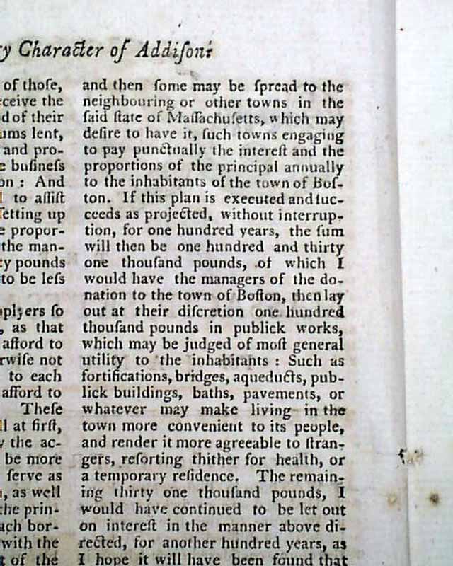 The issue begins with: "Extracts from Dr. Franklin's Will" which takes over a full page and provides many details on various beneficiaries.
