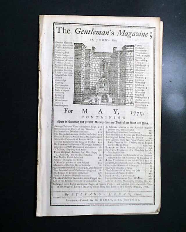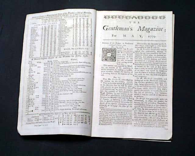 Item # 685843 THE GENTLEMAN'S MAGAZINE, London, May, 1779 A fine opportunity to purchase a magazine from during the Revolutionary War at a reasonable price, as we find almost no American content. At the back under the "Historical Chronicle" is mention that the New York, Quebec & Newfoundland fleets have set sail under the convoy of Admiral Arbuthnot. The balance of the news reports is almost entirely European in focus.