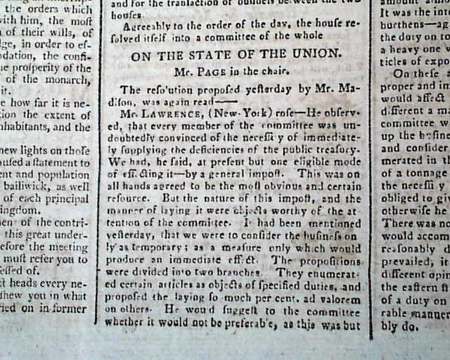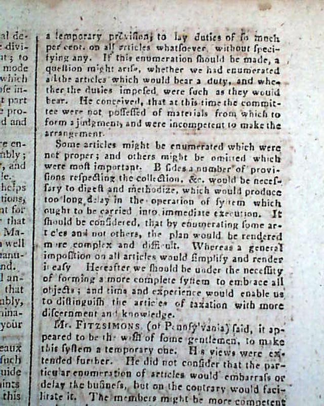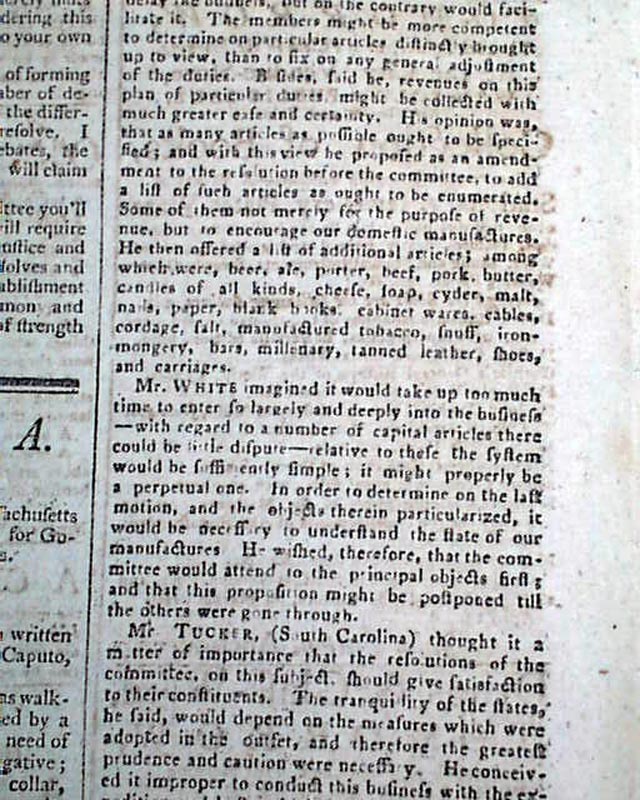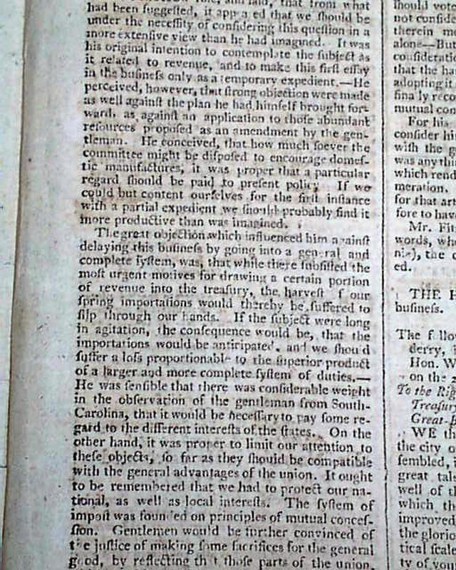 Remember that the House of Representatives first met on April 1, with the first item on their agenda of April 8 being the raising of revenue. This report offers very interesting insight into the founding days of the federal government.