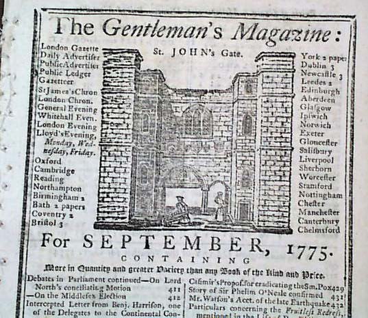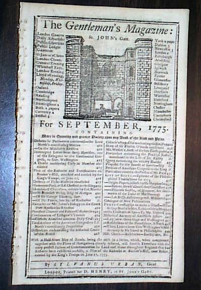 Item # 686266 THE GENTLEMAN'S MAGAZINE, London, England, September, 1775 A nice issue with much historic content from the beginning months of the Revolutionary War.