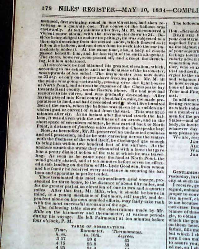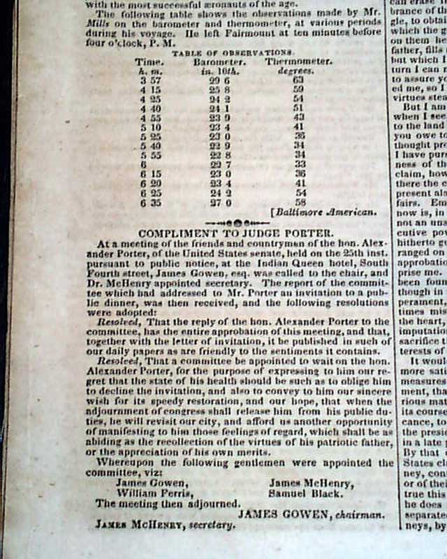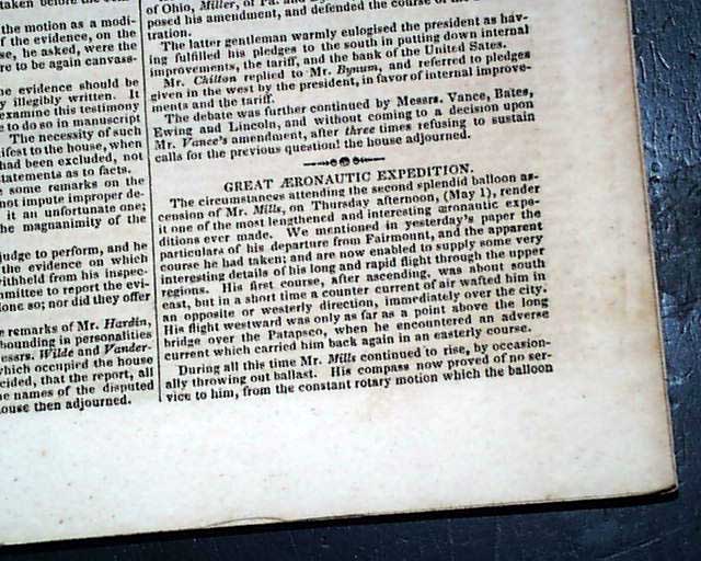 There is much reporting from Congress, and also an article headed: "Great Aeronautic Expedition" concerning a trip in a balloon.
