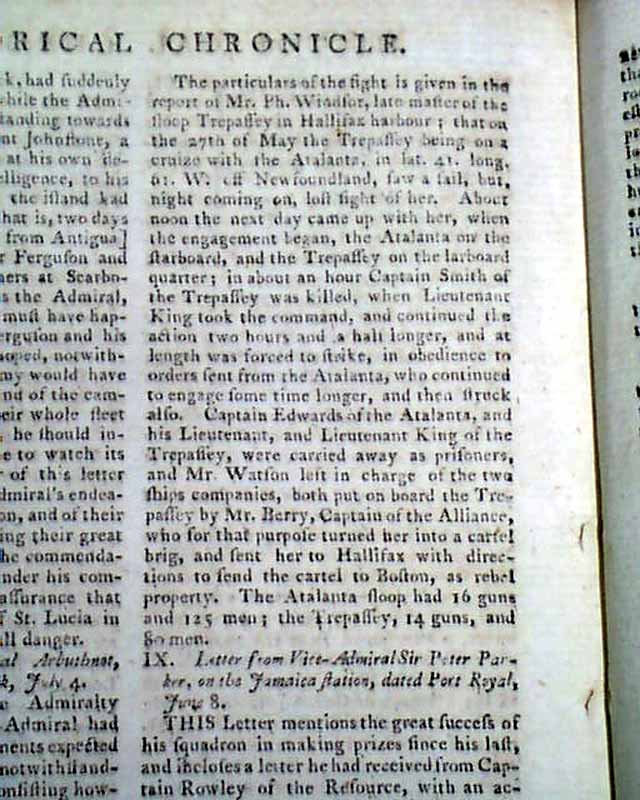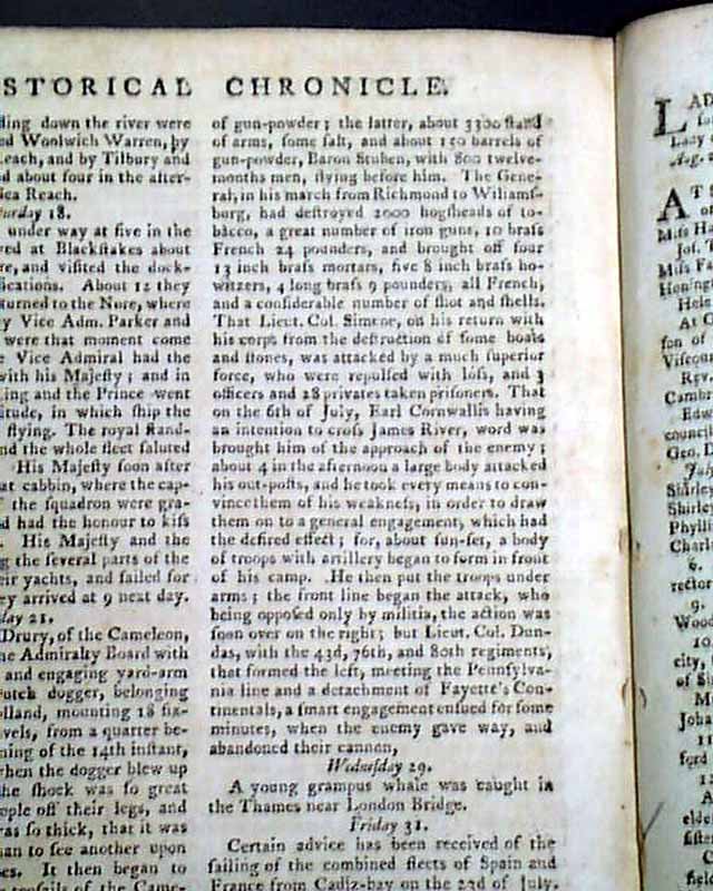 Item # 686407 THE GENTLEMAN'S MAGAZINE, London, August, 1781 The "Historical Chronicle" includes a short bit about: "Two gentlemen...charged with carrying on a treasonable correspondence with the American agent Adams at Amsterdam & with supplying the Colonists with arms & ammunition...".