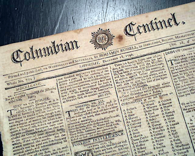 COLUMBIAN CENTINEL, Boston, Dec. 18, 1790