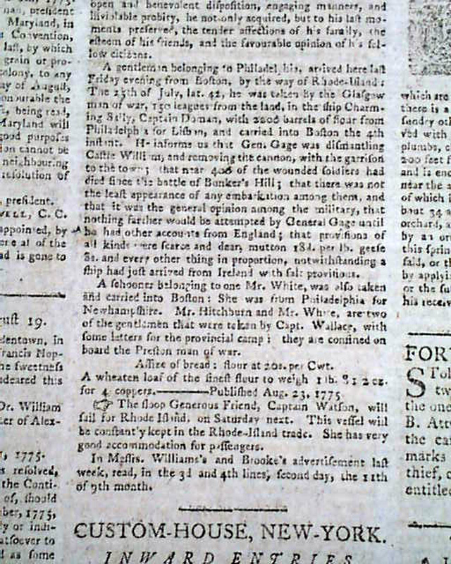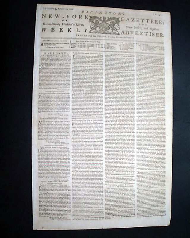 RIVINGTON'S NEW-YORK GAZETTEER; or, the CONNECTICUT, HUDSON'S RIVER, NEW-JERSEY, and QUEBEC WEEKLY ADVERTISER, New York, Aug. 24, 1775