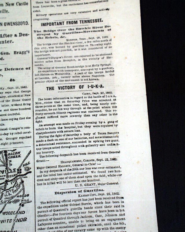 The balance of the front page is mostly taken up with Civil War reports and includes two one column maps as well.