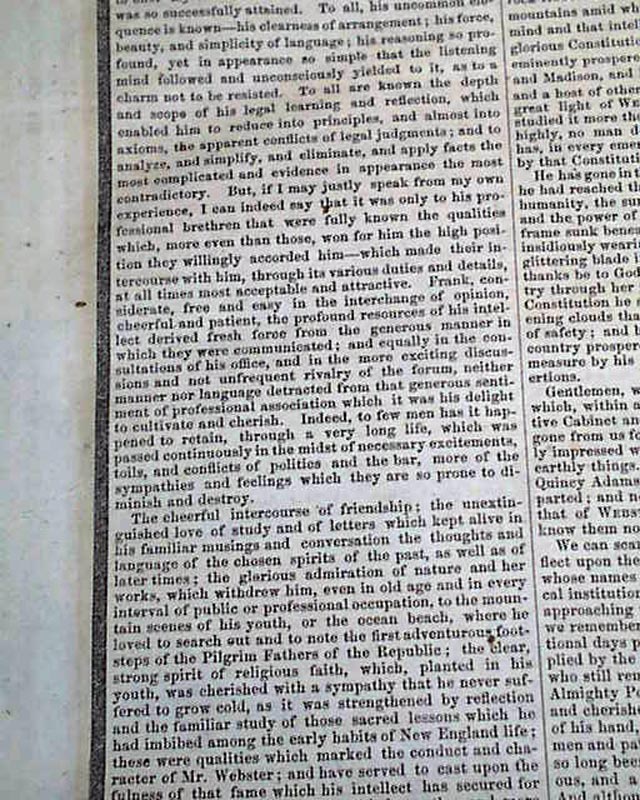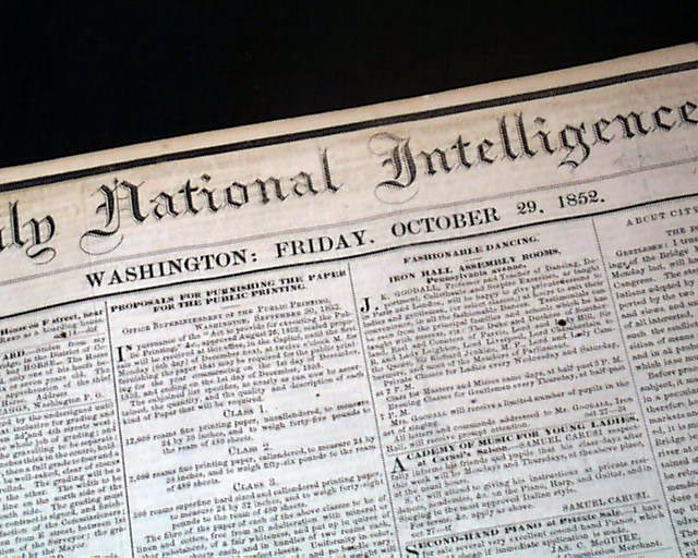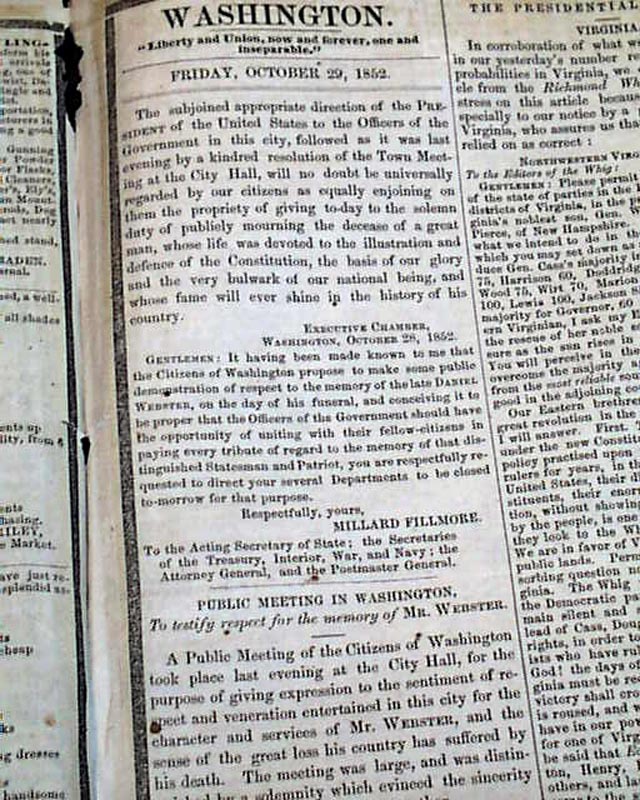 DAILY NATIONAL INTELLIGENCER, Washington, D.C., Oct. 29, 1852 All four pages are lined in wide, black mourning rules for the death of Daniel Webster.