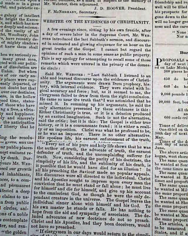 Page 2 begins with: "Tributes To The Illustrious Dead" which takes two columns. Also: "Webster on the Evidences of Christianity".