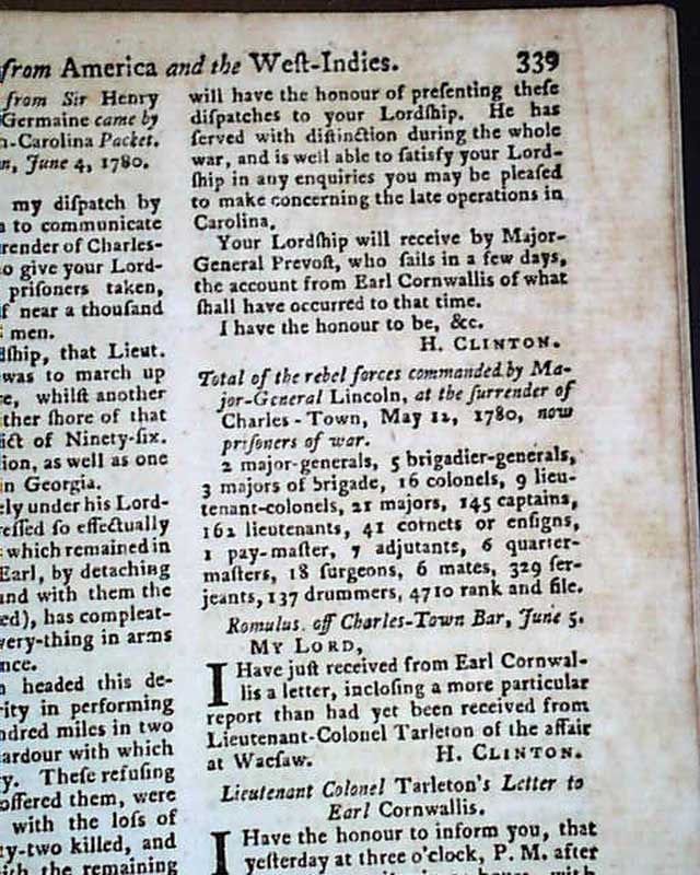 GENTLEMAN'S MAGAZINE, London, July, 1780* Surrender of Charleston SC