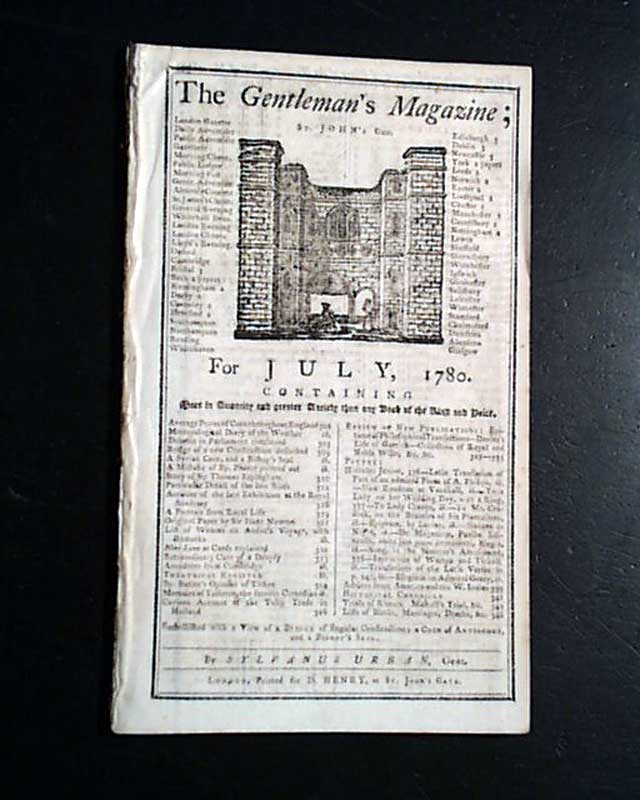 A very nice Revolutionary War era magazine from the "mother country" with a wide range of varied content. This was the first periodical to use the word "magazine" in its title, having begun in 1731 and lasting until 1907.