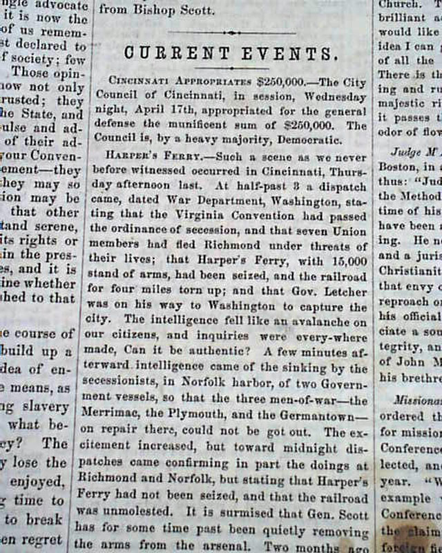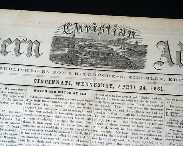 WESTERN CHRISTIAN ADVOCATE, Cincinnati, Ohio, April 24, 1861