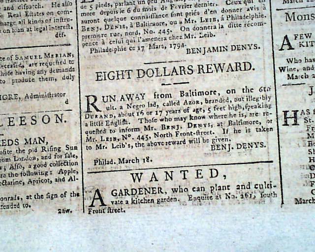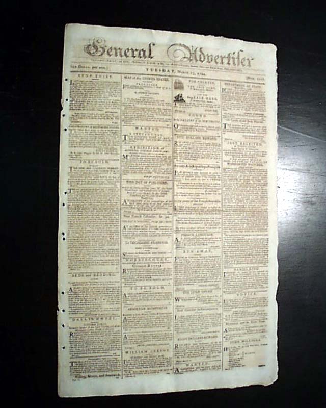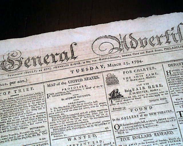 GENERAL ADVERTISER, Philadelphia, March 25, 1794  Page 2 has reports from the "National Convention" relating to the French Revolution, and page 3 has reports: "In the Federal House of Representatives".