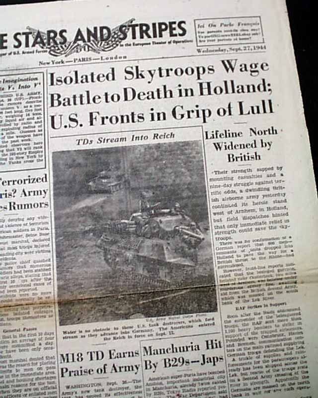STARS & STRIPES, Paris Edition, Sept. 27, 1944 This was the: "Daily Newspaper of U.S. Armed Forces in the European Theater of Operations" as noted in the masthead.