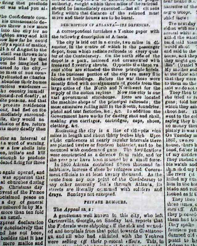 Complete as a single sheet issue with a one column masthead (typical in Southern papers late in the war), trimmed at a portion of the right margin causes some text loss to the back page only.