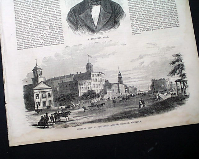 BALLOU'S PICTORIAL, Boston, April 12, 1856 The front page has a print showing: "Central View in Jefferson Ave, Detroit, Michigan (Woodward Ave.)
