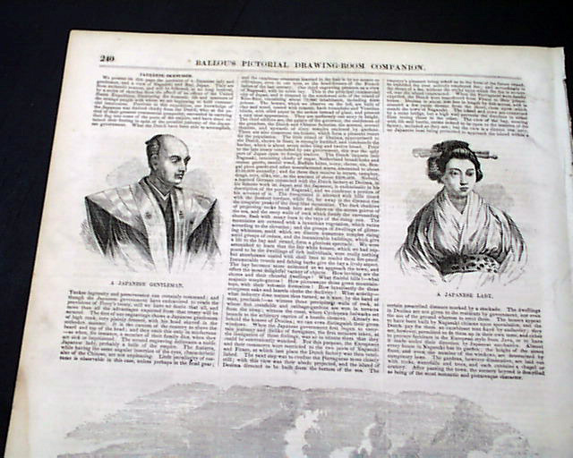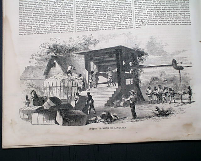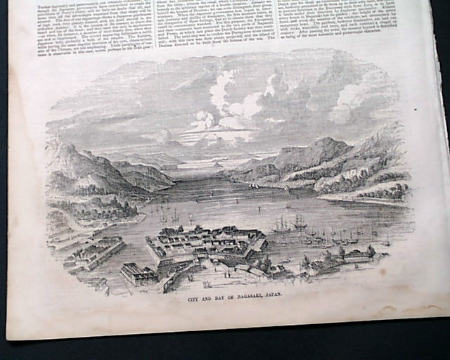 Other prints within include: "Hon. Millard Fillmore" with an article on the former President; "John Eliot Preaching to the Indians" "Henry Hudson Descending the Hudson River" "Cotton Pressing Inn Louisiana" and a nice back page print: "City and Bay of Nagasaki, Japan".