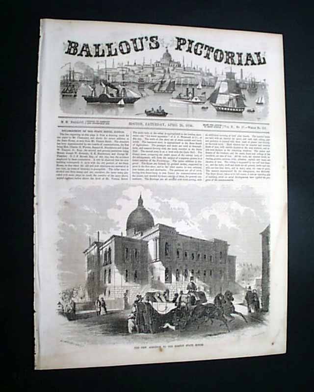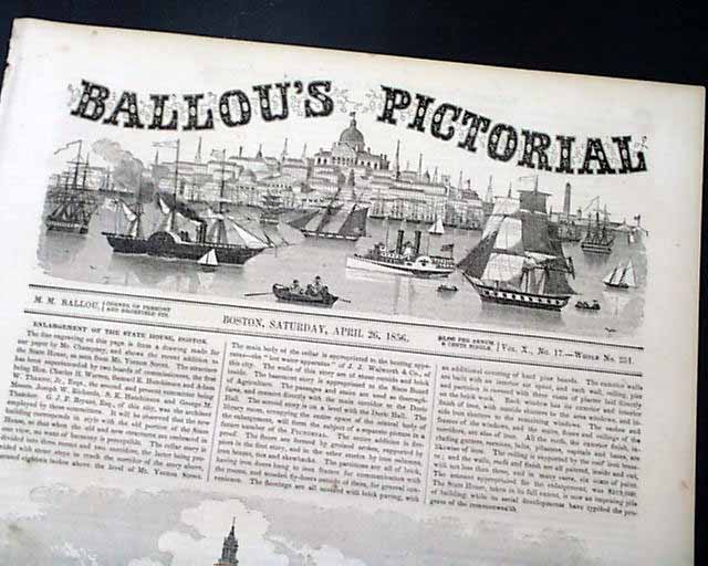 BALLOU'S PICTORIAL, Boston, April 26, 1856 The front page features a print of: "The New Addition to the Boston State House" with a related article.