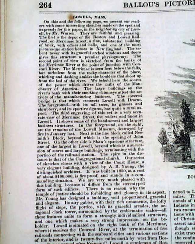 Other prints include: "Boston Railroad Depot, Lowell, Mass." "Junction of the Concord & Merrimac Rivers, Lowell, Mass." "Court House, Lowell" and: "View of Merrimac St., Lowell". The back page shows the: "City of Naples & Eruption of Vesuvius".