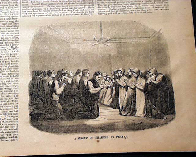 Among other prints inside: "Protestant Episcopal Church, Harlem, New York" and; "A Group of Shakers at Prayer" which has an article with the same heading. Also inside are 5 prints of: "Scenes In Africa" and a: "General View of Macao" with a back page print of: "The Celebrated Blue Grotto at Capri, Italy" and: "Jewish Musician in the Costume of Mogadore, Africa".