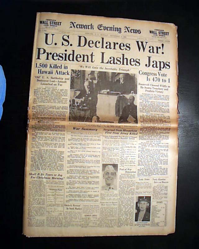 NEWARK EVENING NEWS, New Jersey, Dec. 8, 1941